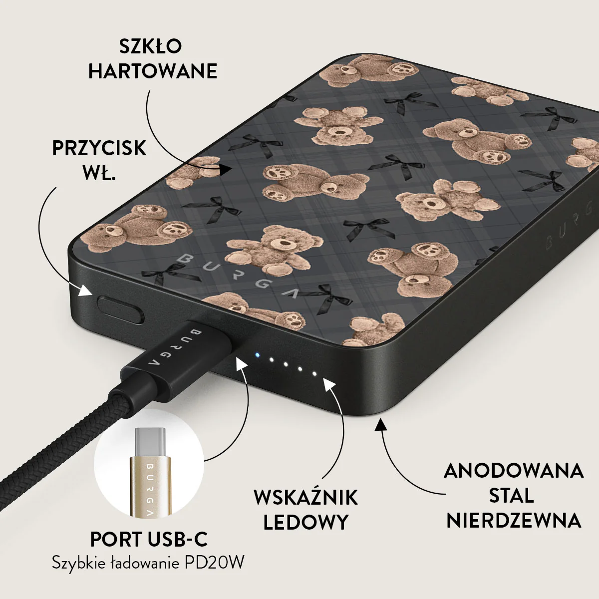 Burga Gunmetal Magnetic Powerbank - magnetyczny powerbank 5000 mAh kompatybilny z MagSafe, kabel USB-C - USB-C w zestawie (BFF)