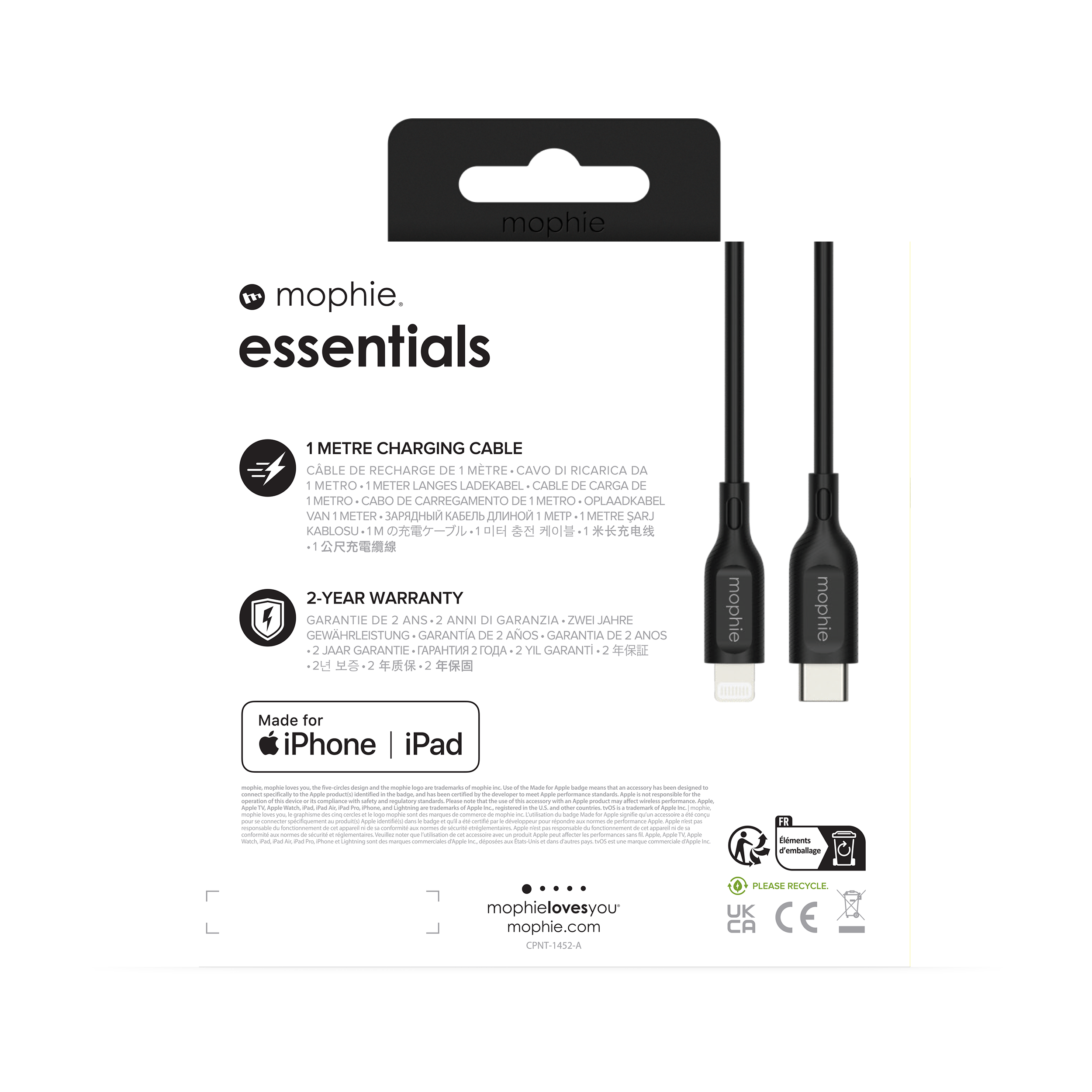 Mophie Essentials - kabel lightning - USB-C 1m (black) MFI