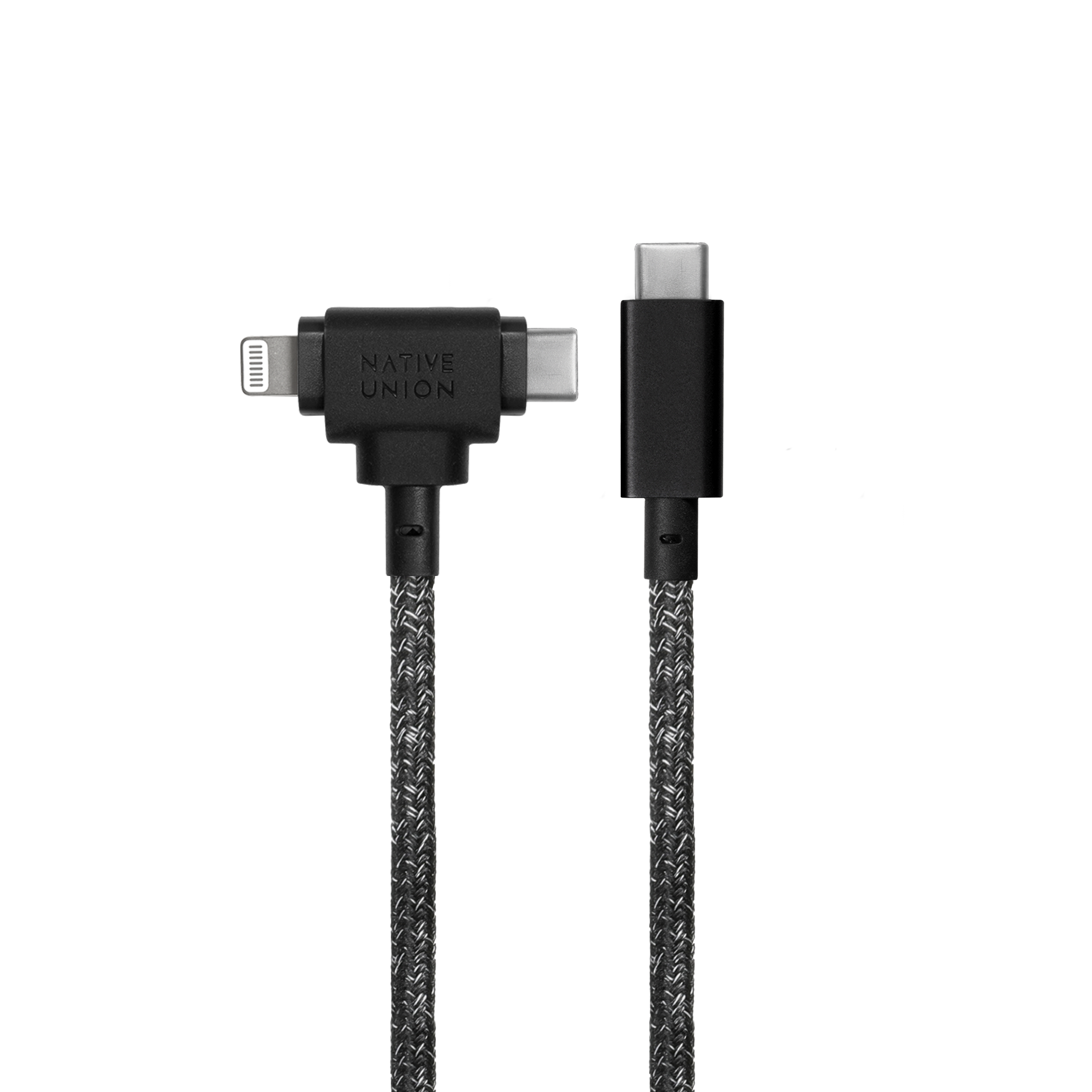 Kabel USB-C z podwójną wtyczką: USB-C i LightningKompatybilny z urządzeniami wyposażonymi w port USB-C lub LightningWykonany z przyjaznych środowisku materiałów pochodzących z recyklinguŁadowanie z mocą do 60 WOpatentowana technologia Slide Lock umożliwiająca naprzemienne korzystanie z wtyczekWzmocniony splot i włókno aramidowe odporne na przetarciaOpaska zapobiegająca splątaniu kablaCertyfikat MFi gwarantujący bezpieczeństwo urządzeń Apple