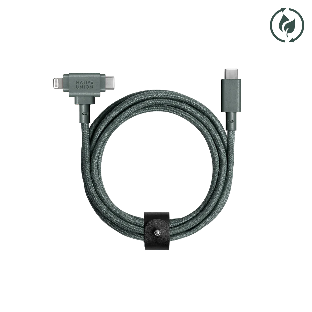 Native Union Belt Cable Duo - kabel USB-C - USB-C / lightning, 1,5 m (slate green)