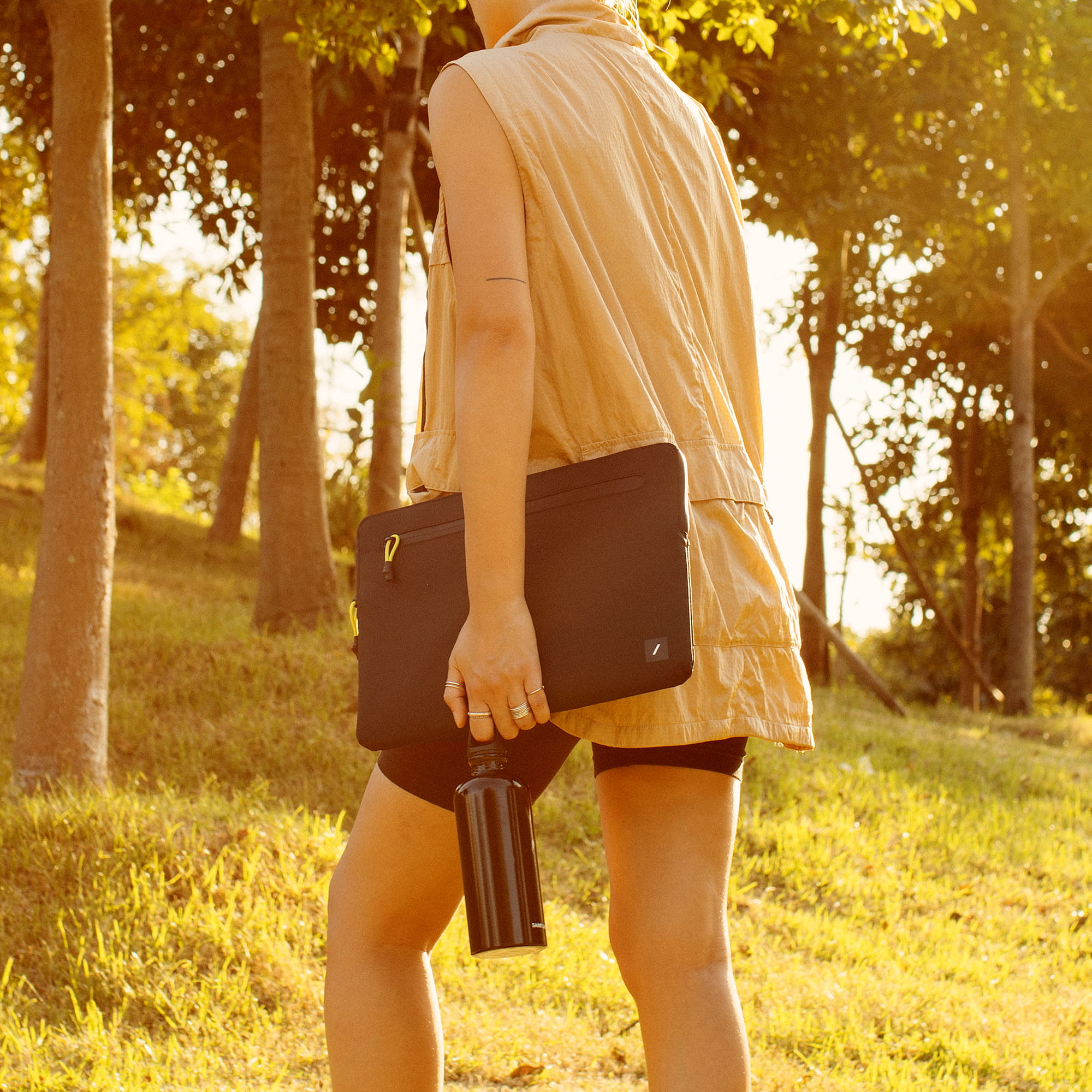 Lekkie i wytrzymałe etui na MacBookaWykonane z materiałów pozyskanych z recyklinguWzmocniony, wodoodporny materiał Rip-StopPiankowa wyściółka chroniąca urządzenie ze wszystkich stronŁatwo dostępna zewnętrzna kieszonka