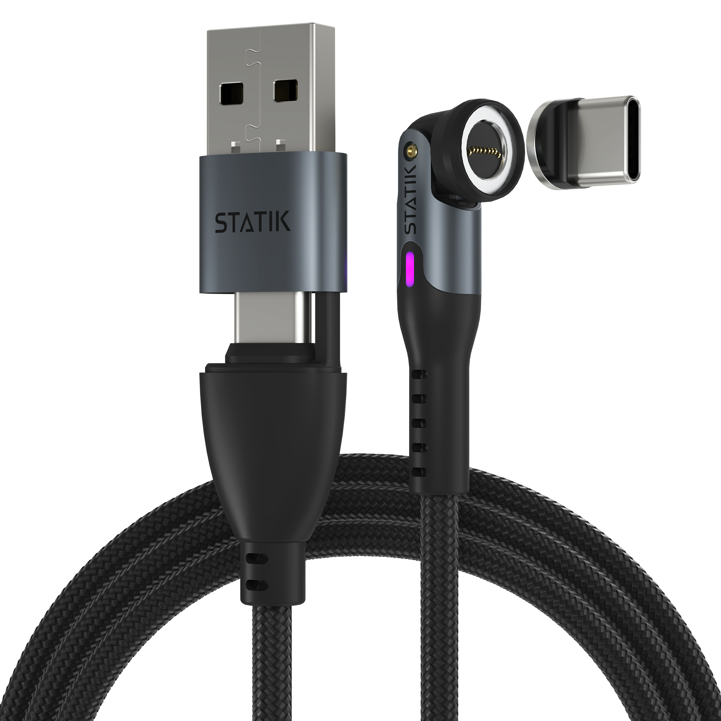 Statik 360 Pro - kabel USB-C z adapterem USB-A oraz trzema wymiennymi wtyczkami magnetycznymi, 2m (USB-C, micro USB, lightning) (black)