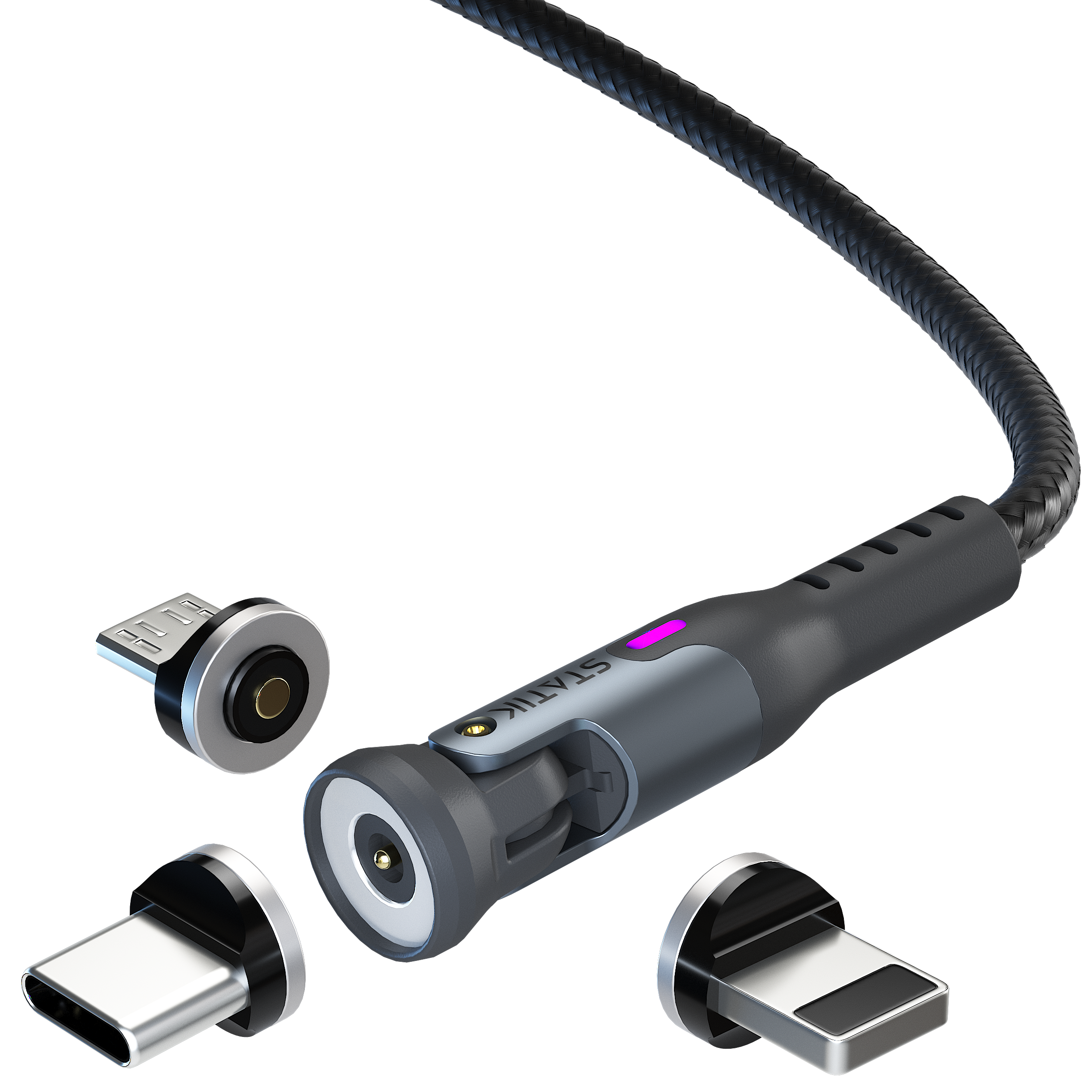 Statik 360 - kabel USB-A z trzema wymiennymi wtyczkami magnetycznymi, 2m (USB-C, micro USB, lightning) (black)